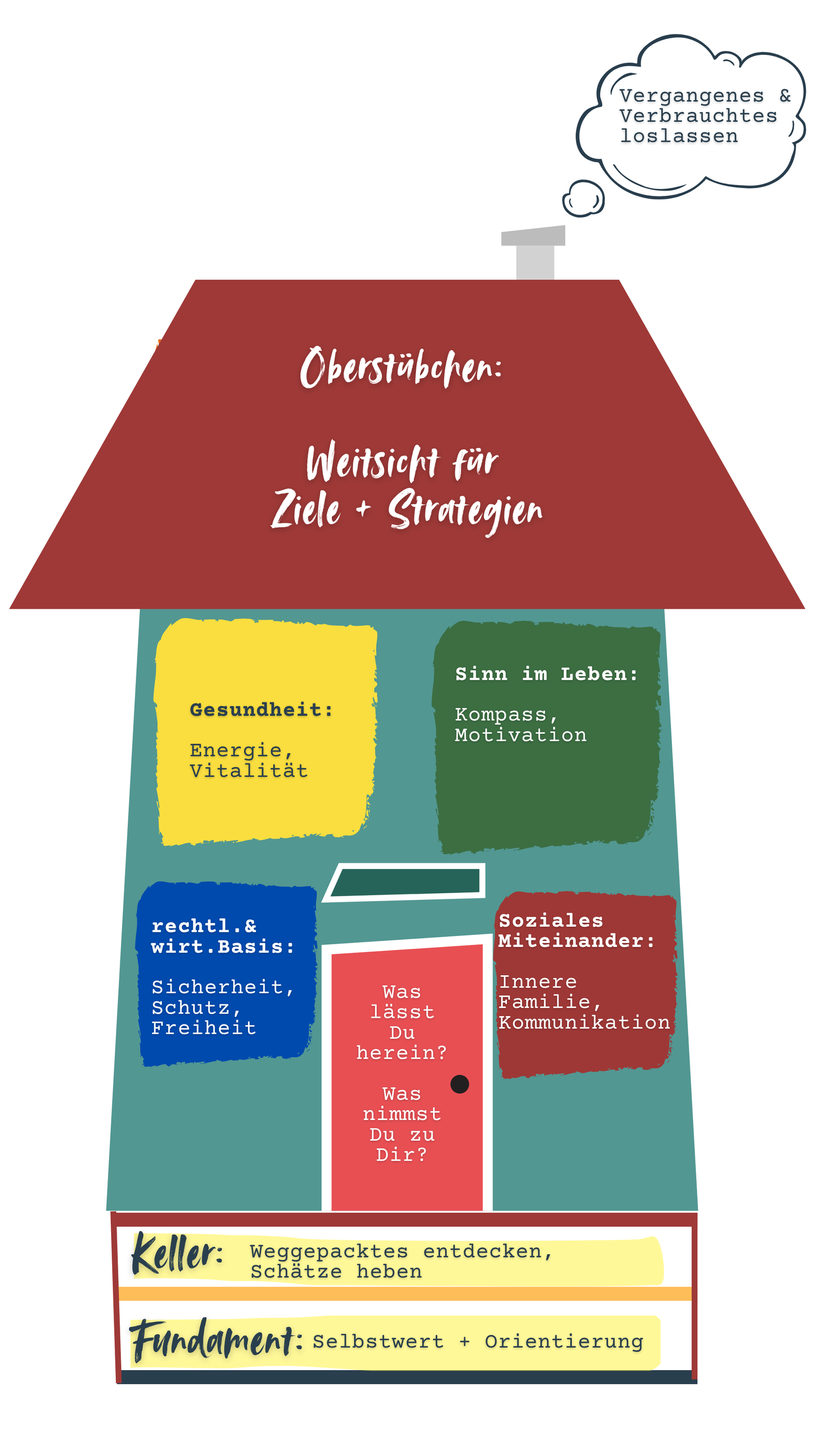Seine Herkunft, seine Gesundheit, sein soziales Miteinander und die Suche nach dem Sinn mache ich in meinem Coaching-System „Du bist Dein Haus“ sichtbar, verstehbar und veränderbar. Hier fließen all meine Erfahrungen der vergangenen Jahrzehnte zusammen.